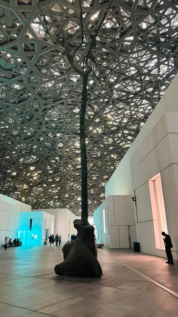 Louvre Abu Dhabi dome has always amazed me but today it felt more meaningful. Its layers of metal crossing and weaving like branches of an ancient tree reminded me how this museum is not just a building but it is a reflection of the UAE belief in connection. The dome gathers light the way the country gathers people softly, naturally and beautifully. It allows each visitor to feel at home no matter where they come from.